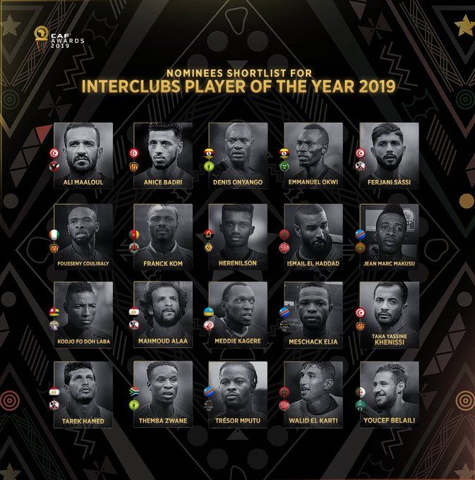 أعلن الاتحاد الأفريقي لكرة القدم "كاف" عن قائمة ضمت 20 لاعبا يتنافسون على جائزة أفضل لاعب "داخل القارة" لعام 2019.