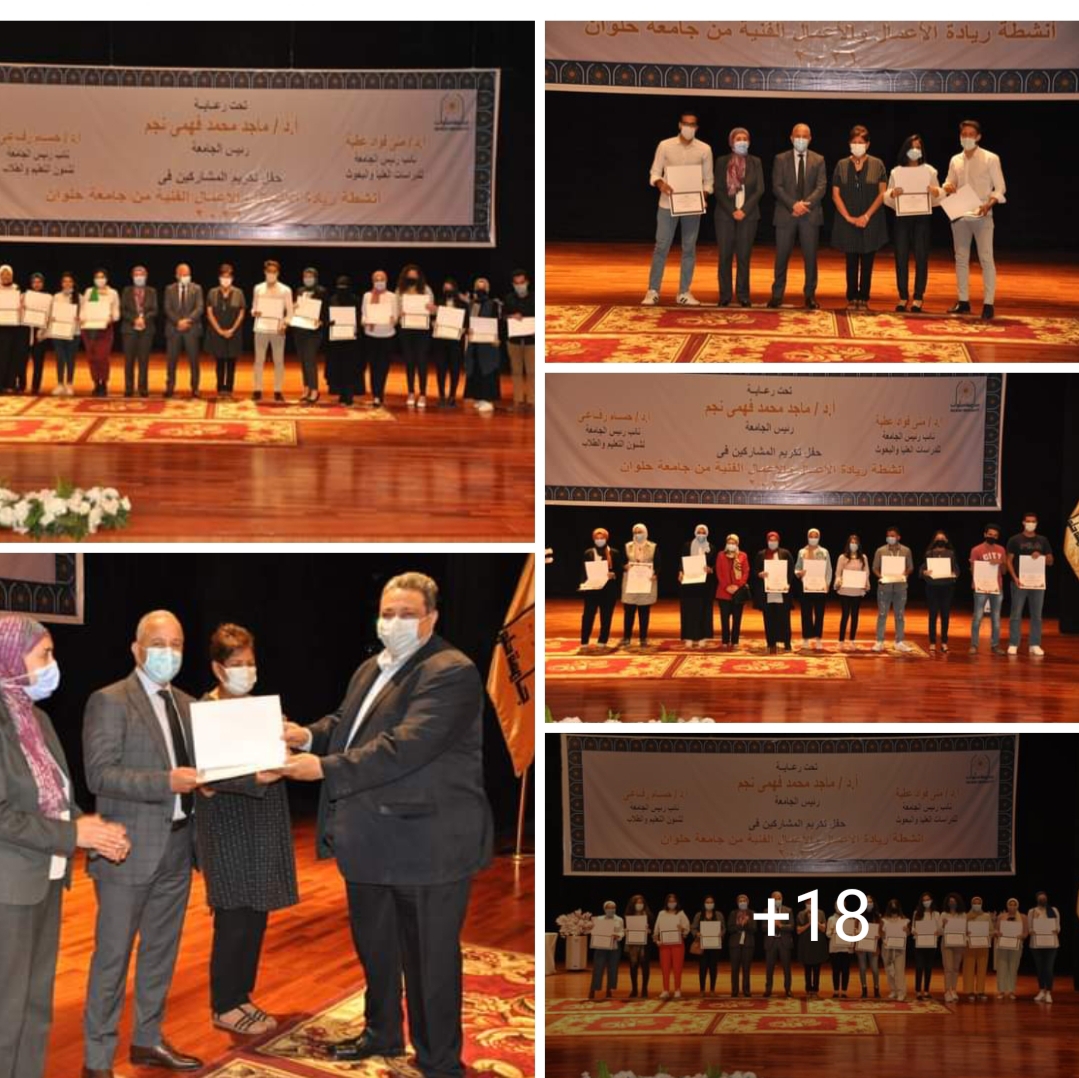 وفي خلال الاحتفالية كرم الأستاذ الدكتور ماجد نجم بعض السادة عمداء الكليات تقديرا لجهودهم فى حثهم الطلاب على المشاركة المجتمعية و خدمة الوطن و الإسهام فى إعلاء مكانة جامعة حلوان، وهم الأستاذة الدكتورة ميسون قطب عميد كلية الفنون التطبيقية، والأستاذ الدكتور محمود حامد عميد كلية التربية الفنية، والأستاذ الدكتور سيد قنديل عميد كلية الفنون الجميلة، والأستاذ الدكتور عماد أبو الدهب عميد كلية العلوم، والأستاذة الدكتورة أماني فاخر القائم بعمل عميد كلية التجارة و إدارة الأعمال.
