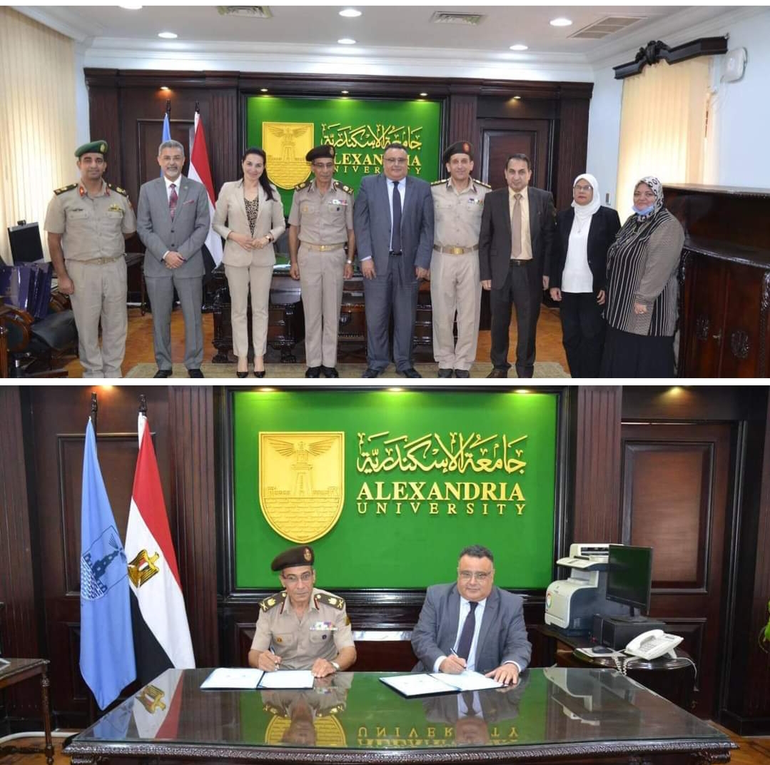 فى إطار السياسة العامة للدولة فى مجال البحث العلمى لحشد وتنشيط وتطوير كافة إمكانيات البحث العلمى والدراسات الطبية لتوفير خدمة صحية وطبية جيدة، وقع الدكتور هشام جابر القائم بأعمال رئيس جامعة الإسكندرية، واللواء طبيب/ خالد عامر مدير مركز البحوث الطبية والطب التجديدى التابع لوزارة الدفاع، أمس الاثنين الموافق 26/10/2020 بروتوكول التعاون بين الجانبين بهدف تعزيز أواصر التعاون فى مجال البحث العلمى فى المجالات الأكاديمية والعلمية والبحثية والتدريبية والتطويرية وذلك بحضور الدكتور وائل نبيل عميد كلية الطب، والدكتورة أمانى إسماعيل عميد كلية العلوم، والدكتور عبد الله مسعد زين الدين القائم بأعمال عميد كلية الزراعة، والدكتورة جيهان جويفل مساعد نائب رئيس الجامعة لشئون التعليم والطلاب لشئون تدويل التعليم العالى والتعاون الدولى، والدكتورة غادة مراد المدير التنفيذي لمركز الأبحاث الطبية و مركز التميز في ابحاث الطب التجديدي و تطبيقاته بكلية الطب.