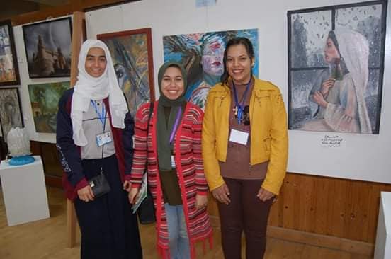وقال احمد عاطف مدير النشاط الفني ان الجامعة تشارك بالمعرض في مجالات الرسم والتصوير الزيتي والنحت والأشغال الفنية لغيره المتخصصين، يمثل الجامعة مينا عادل جميل، وهدى أشرف كلية التربية، وبإشراف محمد حمودة.