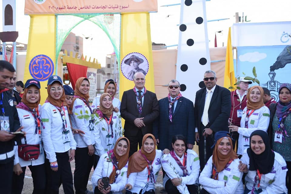 ثم واصل رئيس الجامعة ونائب الرئيس لشؤون التعليم والطلاب متابعته للفاعليات المقامة حيث افتتح معسكر الجوالة والخدمة العامة باستاد الفيوم الرياضي وأعرب عن إعجابه بالتنظيم الجيد للمعرض ومستوى الفرق المشاركة وقام سيادته برفع العلم ثم عزف النشيد الوطني وتفقد أعمال المعرض، رافقه الأستاذ الدكتور صبحي حسانين نائب رئيس الاتحاد الرياضي للجامعات والدكتور هشام الجيوشي سكرتير الاتحاد الرياضي للجامعات ودكتور محمد عيسي نائب رئيس الجامعة لشؤون الدراسات العليا والبحوث وعدد من عمداء الكليات والطالبات ، وعلي هامش الافتتاح قام رئيس الجامعة بمشاركة الطالبات في غرس عدد من الأشجار المثمرة في إطار مبادرة هنجملها.