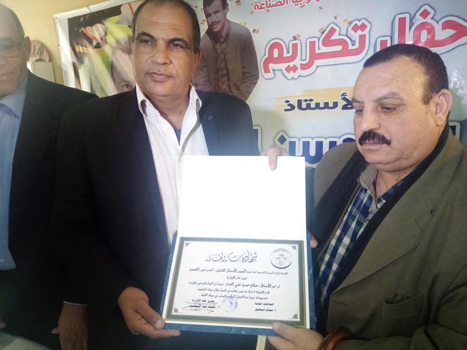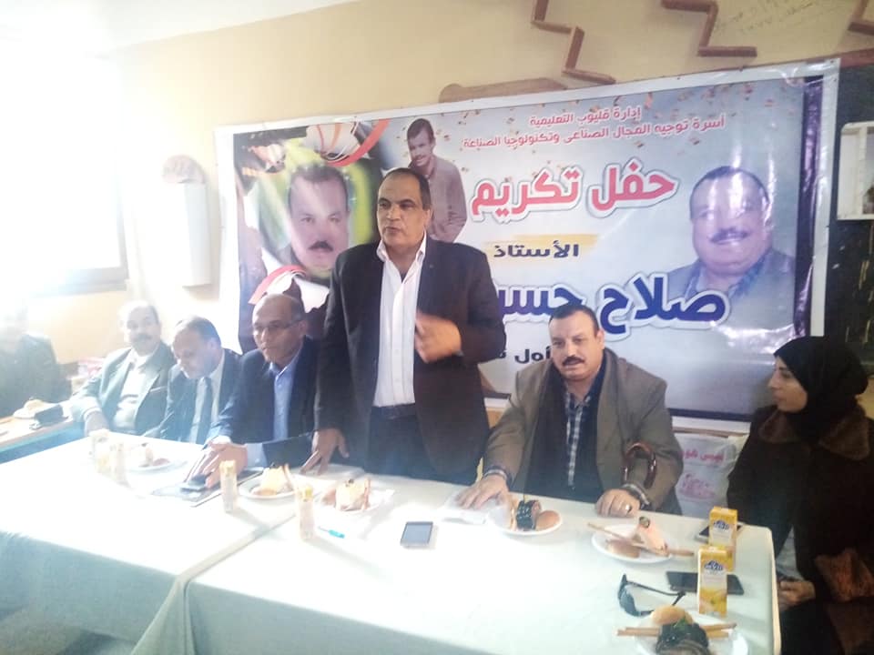 وفى كلمته التى امتزجت بدموع الفرحة والسعادة من حب زملائه وأبنائه خلال الحفل وجهه الاستاذ صلاح الغنام موجه أول المجال الصناعي التحية لزملائه ولجميع الحضور على كلمات الثناء والشكر وحرصهم على مشاركته حفل تكريمها، كما وجهه التحية لأبناء قليوب وبعد ذلك تم أخذ الصور التذكاريه والهدايا