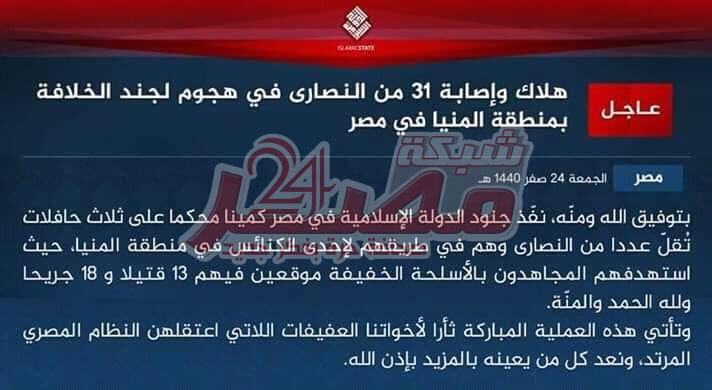 تنظيم داعش الإرهاريي هو من قام بمجزرة المنيا