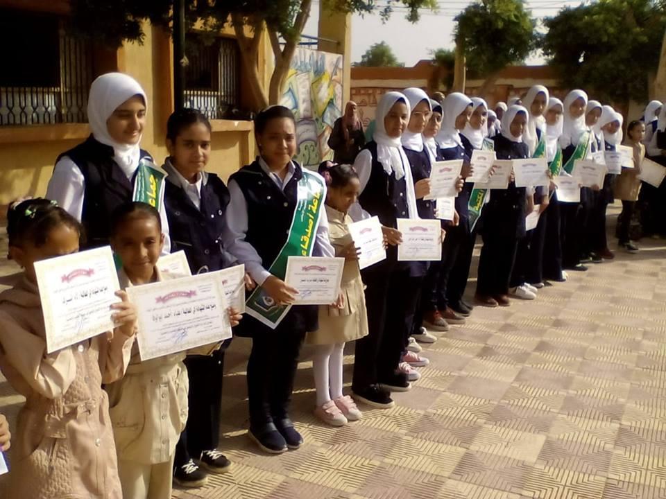 حيث حضر طابور الصباح بمدرسة مستعمرة الرى باسنا وقام بتكريم الطلاب والمعلمين المتميزين وسلم درع التميز بالمكتبات لمدير المدرسة لحصولها على المركز الثالث على مستوى الجمهورية فى مسابقة المكتبات .