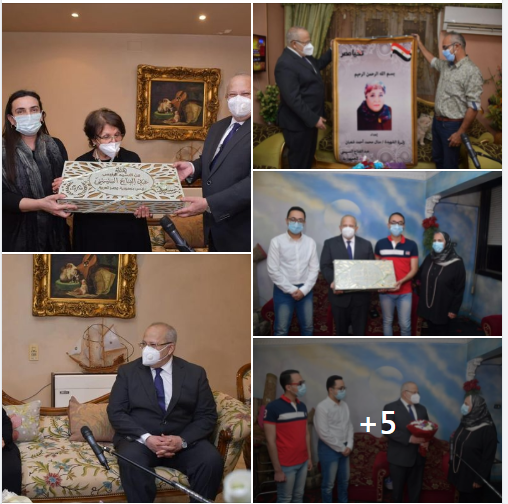 زار الدكتور محمد عثمان الخشت رئيس جامعة القاهرة، بتكليف من السيد الرئيس عبدالفتاح السيسي رئيس الجمهورية أسر شهداء جامعة القاهرة من القطاع الطبي بمنازلهم، لتقديم هدية السيد الرئيس والتي شملت: سجادة رسم عليها صورة الشهيد، ومبلغ مالي، وشاشة تليفزيون حديثة LED، وعلبة كحك عيد الفطر، وذلك تقديرًا من السيد الرئيس لشهداء القطاع الطبي من الجيش الأبيض.