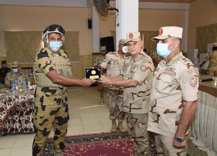 وقام الفريق / محمد فريد بتكريم المتميزين تقديراً لتفانيهم فى أداء مهامهم لدعم جهود الأمن والإستقرار بشبه جزيرة سيناء .