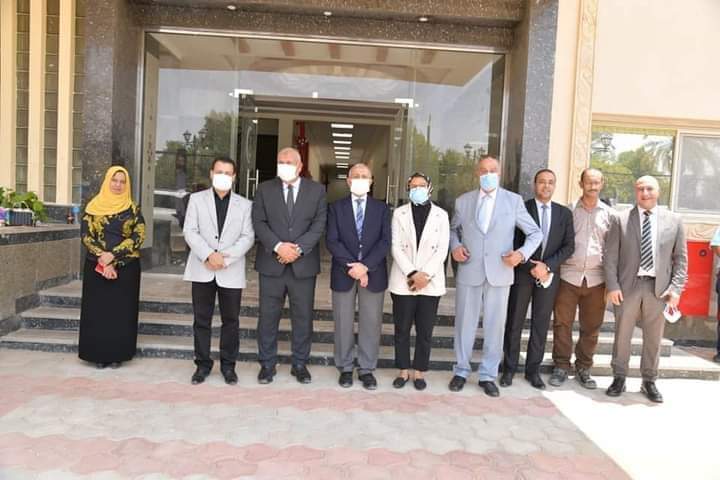 والوفد المرافق له بجحم المنشأت بجامعة الوادى الجديد واهتمام الدولة بهذه المنطقة الواعدة من ارض مصر التى تمثل 44% من مساحة مصر