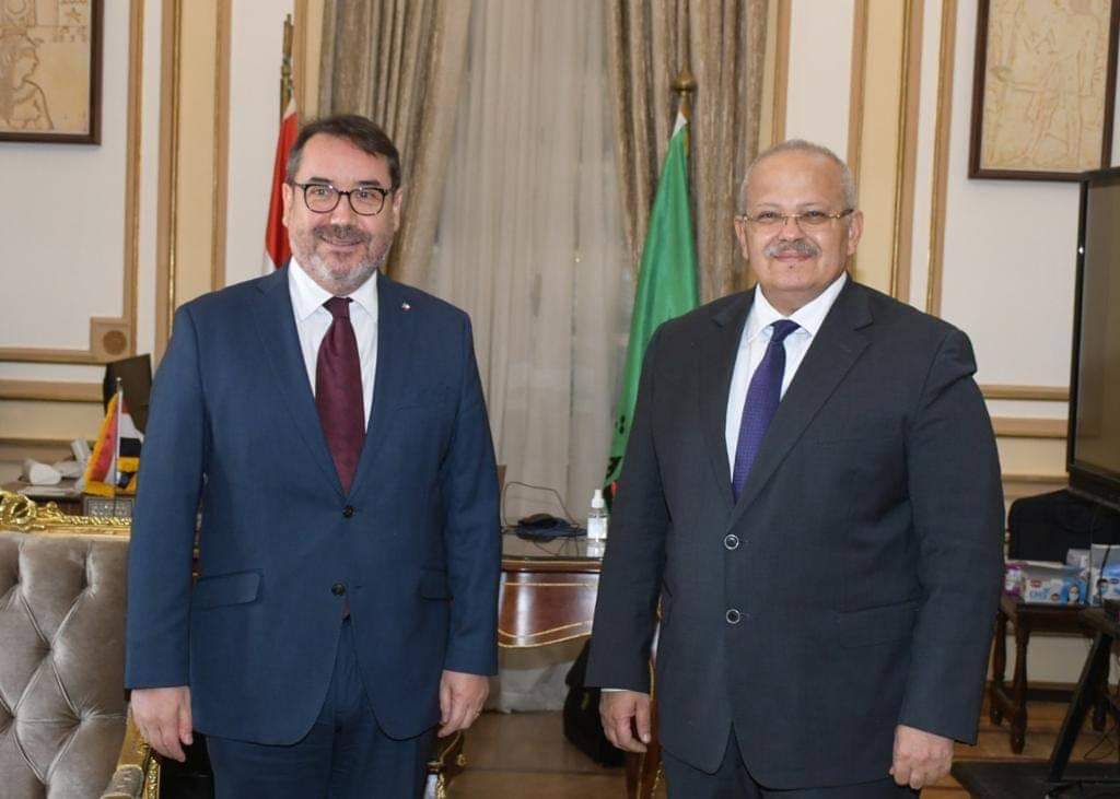 استقبل الدكتور محمد عثمان الخشت رئيس جامعة القاهرة، بمكتبه، السفير بابلو أراريان، سفير دولة تشيلي لدى مصر، لبحث سبل التعاون المشترك بين جامعة القاهرة وجامعات دولة تشيلي، بحضور نائب رئيس جامعة القاهرة لشئون الدراسات العليا والبحوث، وقنصل تشيلي في مصر.