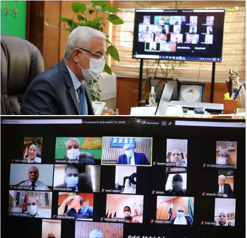 عقد الدكتور عادل مبارك رئيس جامعة المنوفية اليوم اجتماعا بنواب رئيس الجامعة وأمين عام الجامعة وعمداء الكليات "أونلاين" لمتابعة سير العمل بالكليات والإحاطة بقرارات الجلسة الأخيرة التى عقدها وزير التعليم العالي والبحث العلمي برؤساء الجامعات عن الاستعدادات لامتحانات نهاية العام الجامعى الحالى ٢٠٢٠/ ٢٠٢١.
