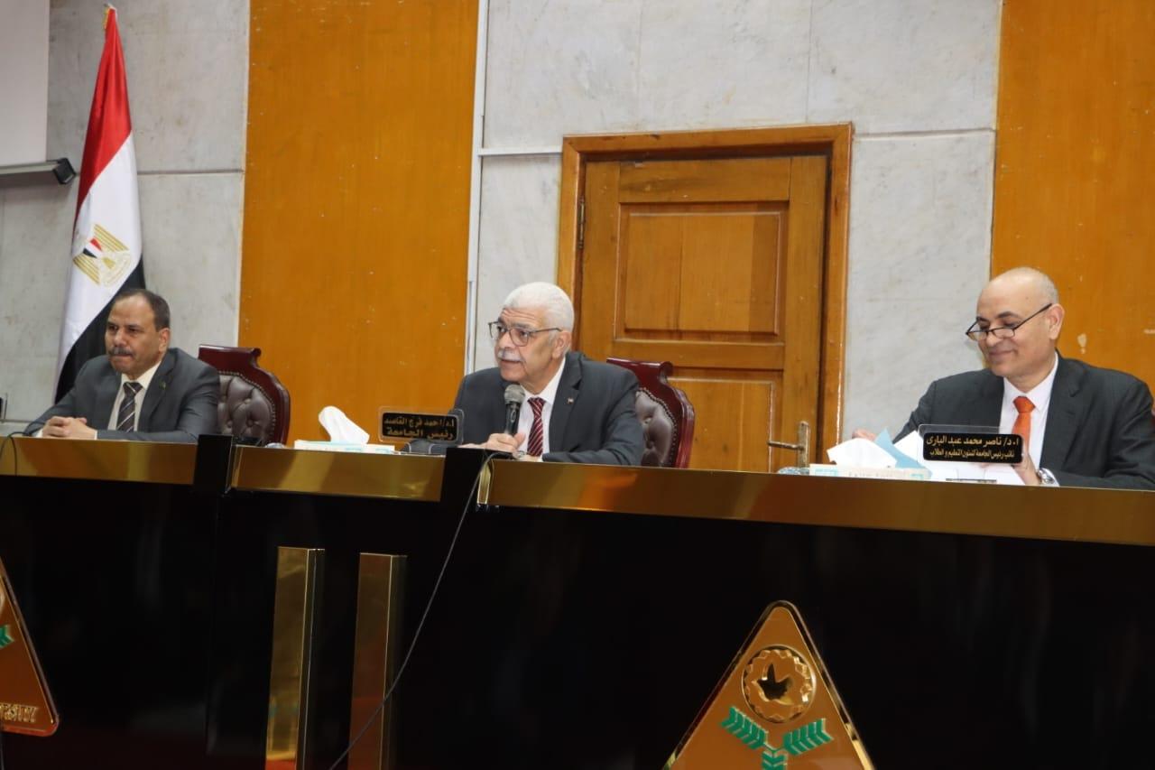 ترأس الدكتور أحمد القاصد رئيس جامعة المنوفية الاجتماع الشهرى لمجلس الجامعة بحضور أعضاء المجلس الدكتور صبحي شرف لخدمة المجتمع وتنمية البيئة والدكتور ناصر عبدالبارى للتعليم والطلاب والدكتور إكرامى جمال أمين عام الجامعة وعمداء الكليات، ومستشارى رئيس الجامعة للشؤون القانونية، ورئيس الإدارة المركزية لمكتب رئيس الجامعة، والمشرف على مركز الجودة بالجامعة.