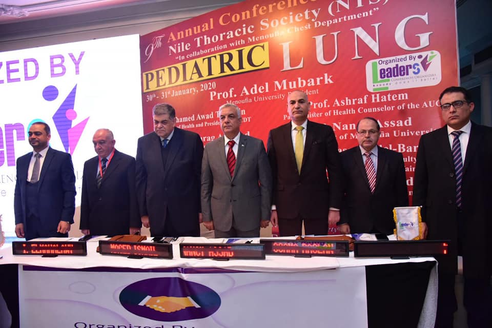 افتتح اليوم الدكتور عادل مبارك رئيس جامعة المنوفية فعاليات المؤتمر التاسع لجمعية النيل للأمراض الصدرية الذي عقد بالتعاون مع قسم الأمراض الصدرية بكلية الطب تحت عنوان "أمراض الرئة بالأطفال" بحضور الدكتور أشرف حاتم أستاذ الأمراض الصدرية جامعة القاهرة و وزير الصحة الأسبق و مستشار وزير التعليم العالى لشئون الجامعة الأمريكية والدكتور أحمد الشعراوي عميد معهد الكبد ومحافظ الدقهلية السابق والدكتور ناصر عبد الباري وكيل كلية الطب لشئون التعليم والطلاب الدكتور أحمد عامر خميس أستاذ و رئيس قسم الأمراض الصدرية بكلية طب المنوفية و الدكتور نصيف حفناوي وكيل وزارة الصحة بالمنوفية و الدكتور حسين ندا نقيب أطباء المنوفية.و الدكتور إبراهيم المحلاوي رئيس جمعية النيل للأمراض الصدرية و أستاذ الأمراض الصدرية بكلية طب المنوفية ورئيس المؤتمر ونظم المؤتمر شركة ليدر لتنظيم المؤتمرات