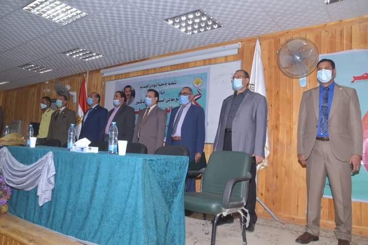 كما قدم الدكتور عبد العزيز طنطاوى رئيس الجامعة الشكر للاستاذ الدكتور عاطف ابو الوفا رئيس الجامعة السابق على مجهوداته فى انشاء جامعة الوادى الجديد لتحقق امال وطموحات ابناء المحافظة لتكون للوادى الجديد جامعة تحمل اسم الوادى الجديد