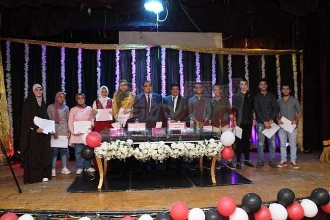 وفي نهاية الحفل تم تكريم الطلاب المتفوقين و أوائل الخريجين بتوزيع شهادات التقدير.