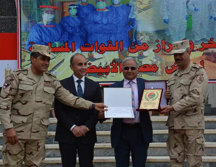 وقدم د. عثمان شعلان الشكر والامتنان للقيادة السياسية والجيش الثاني الميداني الفرقه السادسة المدرعة علي هذه الإحتفالية وعلي هذا الدعم المعنوي لأبطال الجيش الأبيض، وجميع الفرق الطبية تقديرهم لدورهم البطولي والفدائي في تلك الفترة الحرجة التي تمر بها البلاد من جائحة كورونا ، مشيرا أن تكريم الأطباء والأطقم الطبية مستمر لجميع العاملين بالقطاع الصحي الذين يواصلون تقديم التضحيات بأرواحهم للعبور بالوطن من تلك الجائحة