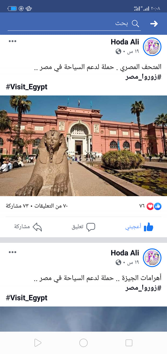 وأضافت: أعلم أن السياحة عمود أساسي في الاقتصاد القومي المصري ومدخل أساسي للعملة الصعبة لا غنى عنه فقررت أن أطلق حملة زوروا مصر باللغتين العربية والإنجليزية للتسويق للسياحة المصرية والمساهمة ولو بجزء صغير جدا في خطة الرئيس عبد الفتاح السيسي في النهوض بالاقتصاد المصري، ولذلك تواصلت مع العشرات من خبراء السوشيال ميديا واطلقنا الحملة وبدانا في الترويج للسياحة المصرية من خلال صور لأهم مزاراتنا السياحية وتفاعل معنا عشرات الآلاف من المواطنين من مختلف دول العالم وأبدوا رغبتهم في زيارة مصر مما أسعدني جدا.