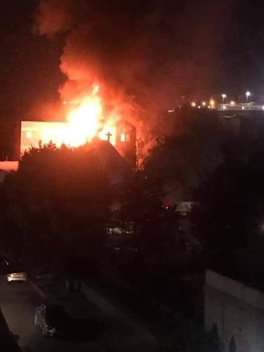 وقالت مصادر كنسية، إن الحريق الهائل أدى لتدمير الكنيسة بالكامل نظرا لكونها مقامة بالأخشاب.