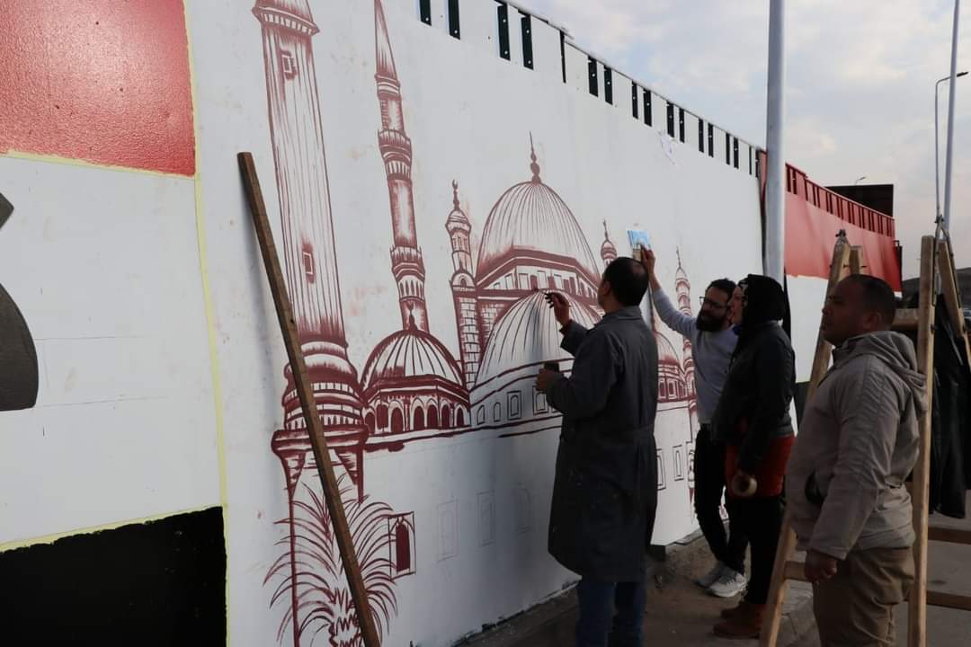 واليوم نراء رجال الورش الإنتاجية بالهيئة العامة لنظافه وتجميل القاهره يبدعون و يرسمون لوحات فنية جماليه اعلي كوبري الملك خالد