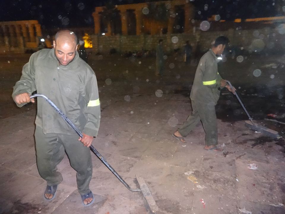 وأوضح " سعود " أنه تم "كنس" الشوارع والطرقات وتنظيف ميدان أبو الحجاج وشارع الكورنيش والممشى السياحي بمعدات وأدوات النظافة المكونة من (3) مكبس و(8) قلاب ، و (2) سيارة ماء للرش ، و(2) مكنسة الى ، و(1) لودر ، وتم إزالة كل المخلفات والقمامة من الحاويات، لافتا إلى أن إجمالي التراكمات التي تم إزالتها ورفعها من الشوارع أكثر من 24 طن قمامة ومخلفات ، حيث تم رفع (14) طن قمامة بساحة سيدى أبو الحجاج ،و(6) طن قمامة بالممشى السياحى ، و(4) طن قمامة بالكورنيش .