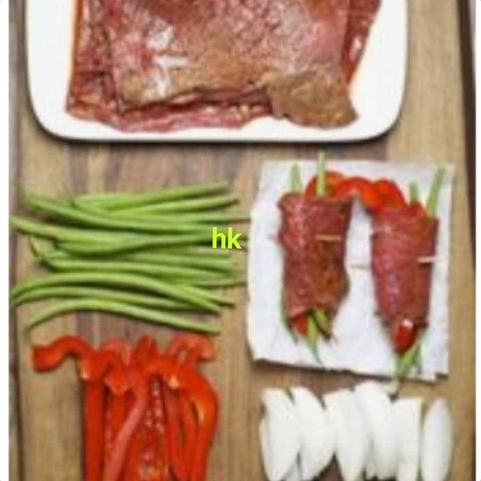 يتم لف الخضار فى قطع اللحمة المقطعة على شكل بفتيك و تغلق بخلة خشبية و تحمر فى طاسة مع قطعة من الزبدة