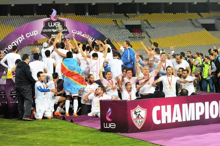 احتفالية كبيرة للاعبى الزمالك بعد الفوز بكأس مصر