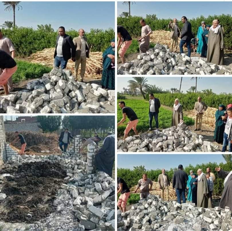 ثانيا: قامت الجمعيه الزراعيه بالخالديه والوحده المحلية بالخالديه برصد حاله تعدى عباره عن اسوار وبداخلها حجره على مساحه ٨٥م وتم ازالتها فى حضور م.محمود زايد رئيس الوحدة وم.جمعه عامر وم.عمر عبدالجواد فنى الوحدى وم.ابراهيم على مدير الجمعيه