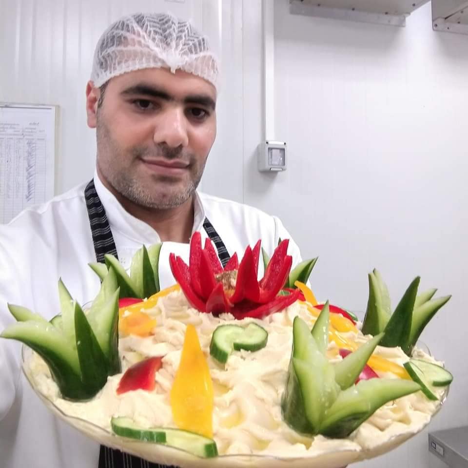 حمص مسلوق/طحينة/مكعبات ثلج/عصير ليمون ملح/زيت زيتون/