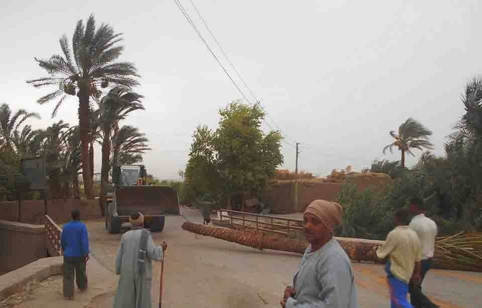 كما تابع رئيس مركز أرمنت أعمال رفع نخله سقطت من شدة من الرياح على أحد أعمدة الكهرباء ، وتم أنزالها دون وقوع خساير ، وتم سحبها بعيداً عن طريق أرمنت اسنا إلى أحد الطرق الفرعية.