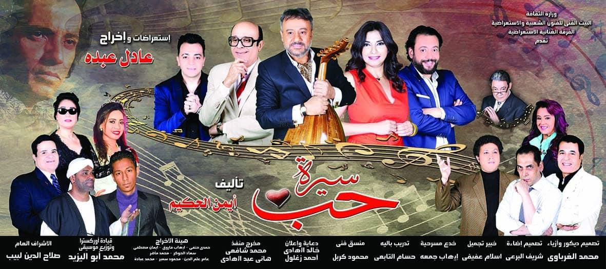 . عادل عبده رئيس الإدارة المركزية للبيت الفني للفنون الشعبية والاستعراضية حيث يستأنف نجوم وصناع العرض المسرحي الغنائي الاستعراضي الناجح "سيرة حب" جماهير المسرح للموسم الثاني بعد النجاح النقدي والجماهيري الذي حققه العرض العرض في موسمه الاول وأحدث حراكا فنيا وصحفيا وإعلاميا غير مسبوق "سيرة حب" فى فعاليات المهرجان القومي للمسرح المصري على مسرح البالون بالعجوزة فى دورته الثانية عشر برئاسة الفنان احمد عبدالعزيز ، ترصد " سيرة حب " محطات من حياة الموسيقار الكبير بليغ حمدي وتستدعي عدة رموز وأهرامات أثرت الحياه الفنية بينها موسيقار الأجيال محمد عبدالوهاب وكوكب الشرق ام كلثوم والشاعر الكبير عبدالرحمن الابنودي والفنانة وردة والفنان عبد الحليم حافظ والفنان محمد رشدي والفنان والنقشبندي وعدوية .