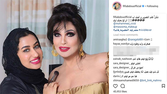 وعلقت فيفى عبده على الصور قائلة"شكرا التصوير والميك آب بحبكم أوى"،