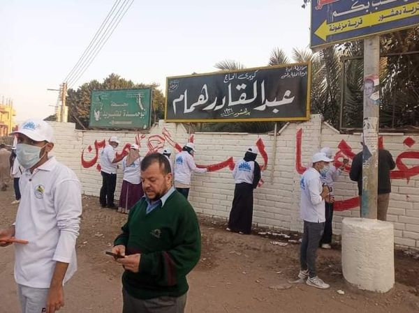 قام الشهابى بتشجيع شباب جمعية السياحة بدهشور لمتابعة اعمال التجميل للقرية بايدى الشباب على العمل الرائع المتميز