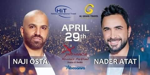 ويحيي الحفل كلا من النجم "ناجى الاسطا" والنجم "نادر الاتات" فى فندق اكسبرينس كيروزيس experience kerozeis parkland متمنين لكل الشعب المصرى الحبيب من قلب لبنان الف تحية وكل عيد ربيع وكل العالم العربى بالف خير.