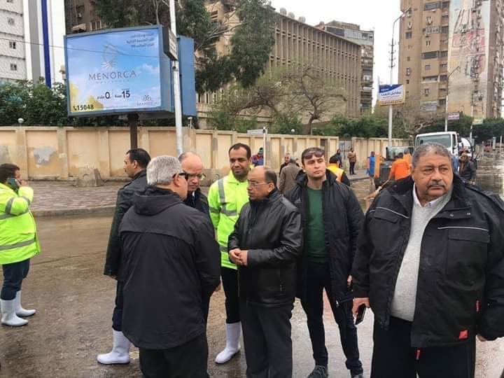 وعقب ذلك توجه الوزير محمود شعراوي يرافقه اللواء خالد عبدالعال محافظ القاهرة والمهندس ممدوح رسلان رئيس الشركة القابضة لمياه الشرب والصرف الصحي لمنطقة المنصة بطريق الأوتوستراد وتم متابعة أعمال سحب تجمعات المياه .