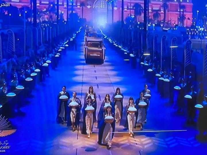 وموكب المومياوات والذي يعتبر اعظم حدث تاريخى فى مصر نقل ملوك وملكات القدماء المصريين من المتحف المصري الى متحف الحضارة المصرى ونقل اعظم من حكمو الارض فى عصر القدماء المصريين فى يوم حافل تاريخى لن يتكرر من المتحف المصري إلى متحف الحضارة بالفسطاط وينقل الحدث العظيم جميع القنوات الفضائية المصرية والعالمية ووكالات الأنباء لأهمية الحدث العالمى . و أن هذا الحدث التاريخي هو تأكيد علي قدرة الدولة المصرية في السير في اتجاهات متنوعة ومتكاملة فنحن اليوم نشهد في الرحلة علي جانبي المسير حجم التطور الذي شهدة ميدان التحرير وكل المناطق التي سيمر بها الموكب وتعكس ان الدوله امنه وقادرة علي العمل فى كل الاتجاهات وخلال اشهر سيشهد العالم ايضا حدثا أضخم وهو افتتاح المتحف المصري الكبير. وبحضور سياسي ودبلوماسي على أعلى مستوى، كما سيشارك فيه نخبة من المفكريين والكتاب والفنانين والسياسيين والإعلاممين من كل العالم، وسيتم نقله عبر أكثر من 200 قناة ووكالة إخبارية، فضلا عن 400 محطة فضائية محلية وعربية.