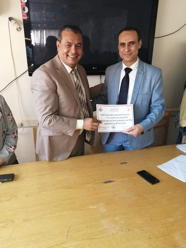 كرمت اليوم مديرية الصحة بسوهاج ممثلة في د.هاني جميعة وكيل وزارة الصحة بسوهاج قسم الطب الوقائي بإدارة البلينا الصحية تحت قيادة الدكتور النمر محمدين في احتفالية رائعة بقاعة الوقائي بمديرية الصحة بحضور كل من