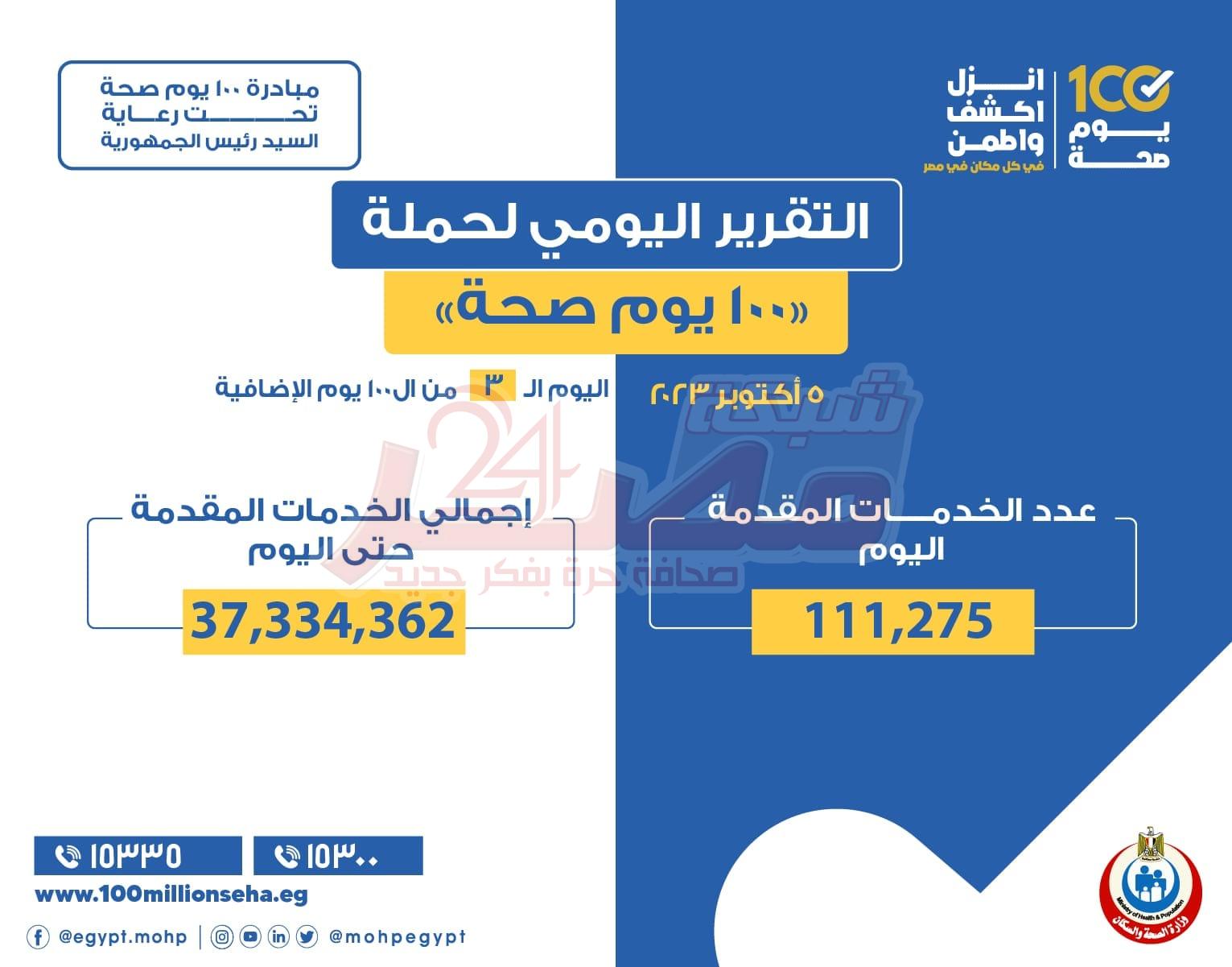الصحة تعلن التقرير اليومي لحملة "100 يوم صحة...