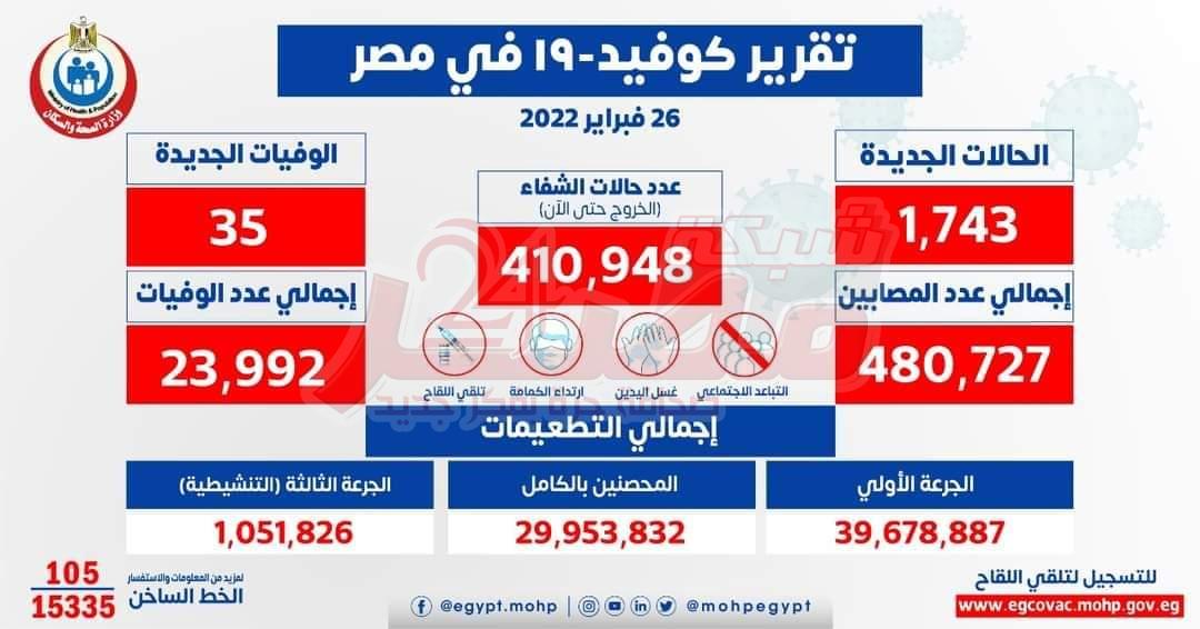 الصحة: تسجيل 1743 حالة إيجابية جديدة بفيروس...