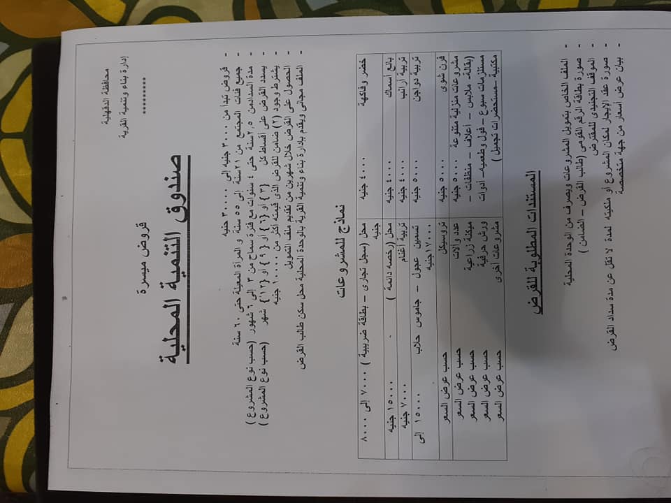 - الملف الخاص بتمويل المشروعات ويصرف من الوحدة المحلية.