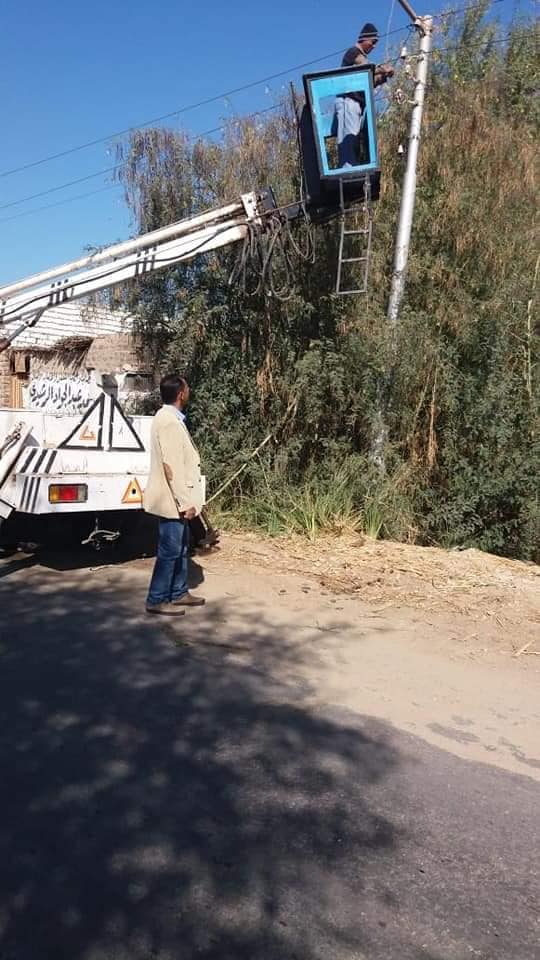 قامت الوحدة المحلية لقرية اولاد نجم بهجوره امس برئاسه الاستاذ.عاطف محمد اسماعيل رئيس القريه ولليوم الثانى على التوالى بعمل صيانه للكشافات بنجوع وعزب قريه اولاد نجم بهجوره