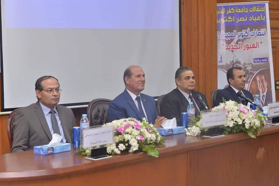 تحت رعاية الأستاذ الدكتور عبد الرازق دسوقي رئيس الجامعة نظمت جامعة كفر الشيح اليوم الثلاثاء الموافق 8 – 10 – 2019 في كلية الصيدلة ندوة بمناسبة الاحتفال بالذكرى ال 46 لانتصارات حرب أكتوبر المجيدة بحضور الأستاذ الدكتور رضا صالح نائب رئيس الجامعة لشئون خدمة المجتمع وتنمية البيئة والأستاذ الدكتور رمضان الدوماني عميد الكلية وأعضاء هيئة التدريس والهيئة المعاونة والطلاب وذلك في إطار احتفال الجامعة بذكرى انتصارات السادس من أكتوبر المجيدة ضمن سلسلة احتفالات الجامعة خلال شهر أكتوبر الحالي .