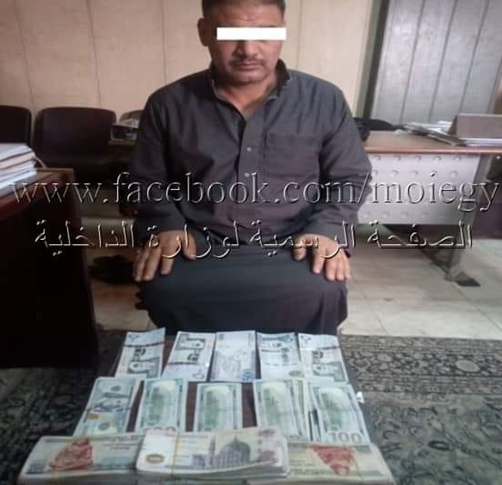 عقب تقنين الإجراءات أمكن ضبطه حال تعامله مع أحد الأشخاص.. بحوزته (117 ألف جنيه مصرى- 2200 دولار أمريكى - 2500 ريال سعودى ) حصيلة تعاملاته المالية الغير مشروعة.