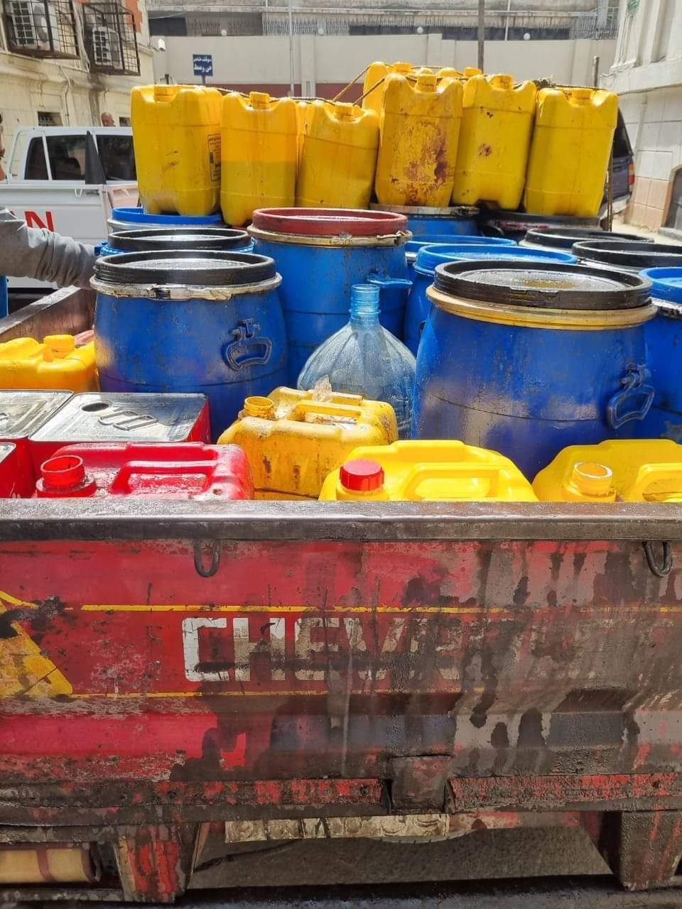ضبط سيارة نقل محملة بزيت طعام مستخدم مجهول المصدر بمنطقة الابراهيمية باب شرق وتم ضبط و تحريز الاتى: