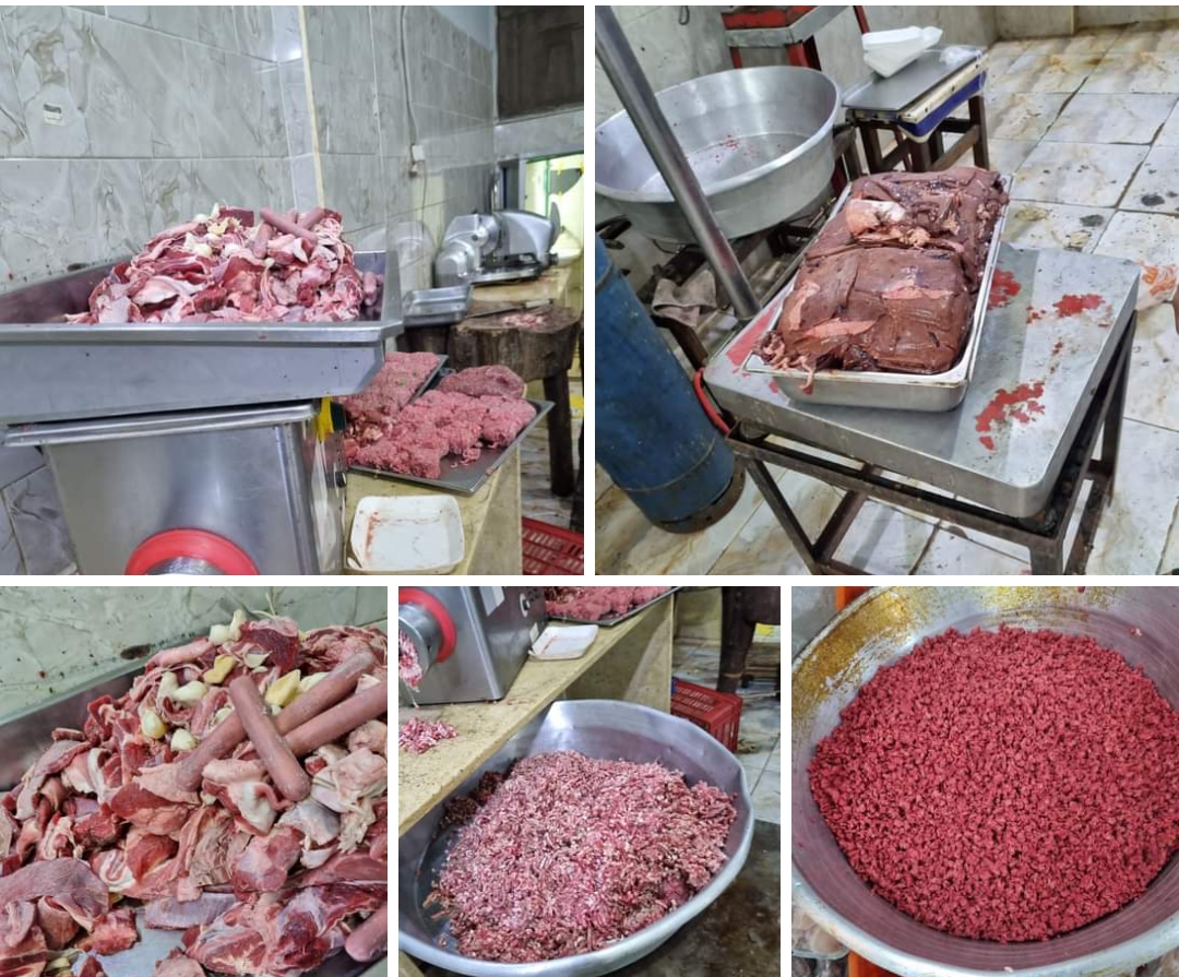 ضبط مصنع لتصنيع اللحوم بدون ترخيص و تم تحريز الأصناف و الكميات الاتية :
