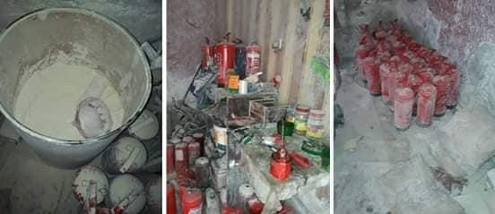 عقب تقنين الإجراءات والتنسيق ومسئولى مديرية التموين والتجارة الداخلية بالجيزة تم إستهداف المصنع المُشار إليه وتم ضبط مدير المصنع المسئول وبتفتيش المصنع ضُبط بداخله كميات كبيرة من سوائل إطفاء الحريق"البودرة البيضاء"بلغ إجمالى وزنها (1,340 طن- 280 إسطوانة إطفاء حريق - 260 قطعة "أدوات تجهيز" جميعها مجهولة المصدر وغير صالحة للإستخدام ) وذلك على النحو التالى :