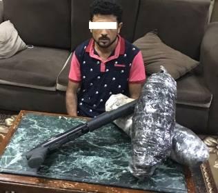 ضبط ( بندقية خرطوش ، طبنجة ، 2 فرد محلى الصنع، 15 طلقة نارية مختلفة الأعيرة ) .