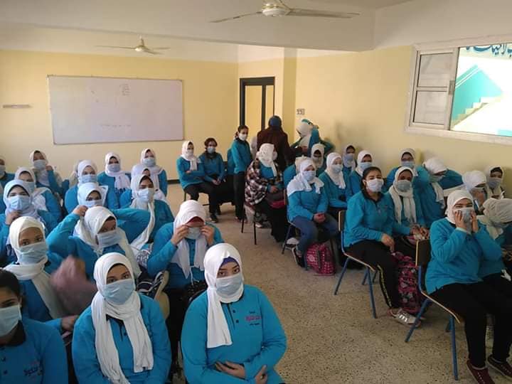 حيث تضمنت الماحضرة كيفية التعامل مع الشائعات والأمراض المنتشرة وكيفية التعامل معها من النواحى الصحية والطبية والارشادات حول النظافة العامة والشخصية والأماكن والأشخاص وقد ارتدت جميع الفتيات الكمامات الواقية بعد التعرف علي سبل السلامة والصحة وتجنب اى شئ به ضرر علي صحة اولادنا وطلابنا