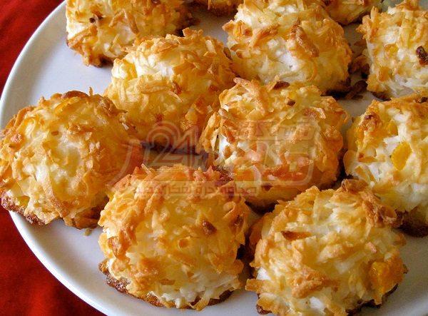 المقادير 3 اكواب جوزة الهند ناعم – نصف كوب لبن مكثف محلى – 2 بياض بيض – فانليا الطريقة يخفق البيض جيد ثم نضيف له الفانليا ونستمر في الخفق ثم نضيف جوزة الهند والحليب المكثف المحلى ثم نأخذ قطع وتكور وتوضع في صينية مدهونة وتوضع في فرن متوسط الحرارة حتى تأخذ اللون الذهبى {وتزين بأنصاف الكريز حسب الرغبة}