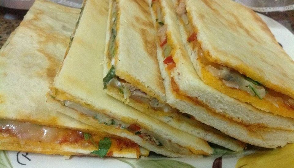 توضع في سخانة السندويش 3 دقائق او حتى تذوب الجبنة و يحمر التوست قليلا وبالعافية وبالهنا والشفا