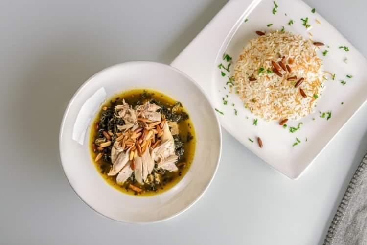 وقدمي الملوخية ساخنة إلى جانب الأرز الأبيض بالشعيرية.