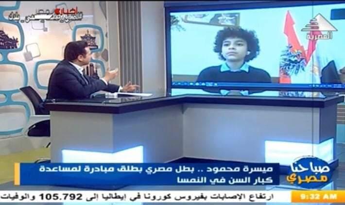 ألقى برنامج "صباحنا مصري"، الضوء على البطل المصري في النمسا الطفل ميسرة محمود الذي أصبح حديث وسائل اﻻعلام النمسوية والأوروبية من خلال المبادرة التي اطلقها هو وأصدقائه هناك لمساعدة كبار السن بشراء احتياجاتهم من الغذاء و الدواء للوقاية من فيروس كورونا.