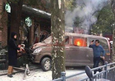 وذكرت شاهدة عيان إن سيارة "فان" مشتعلة اصطدمت بمجموعة من المارة وأصابت الكثيرين، بينما تمكن آخرون من تفاديها.